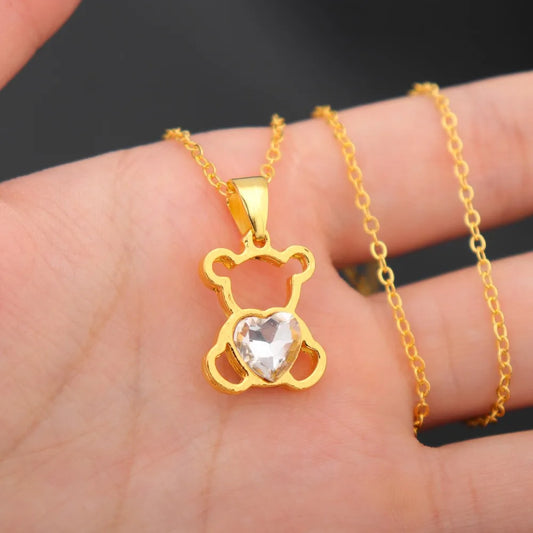 🐻 Cartoon Bear Crystal Pendant Necklace – Retro Fashion Jewelry for Boys & Girls | Cute Kids Gift 🎁 | Vintage Aesthetic Charm ✨