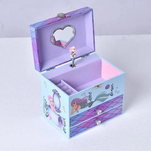 Purple Ocean Mermaid Wooden Musical Jewellery Box with 2 Drawers | Kids Jewellery Storage Birthday Gift for Girls!