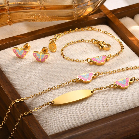 Chic Butterfly Jewelry Set for Baby - Earrings, Bracelet & Necklace | Hypoallergenic & Tarnish-Free Gift Set