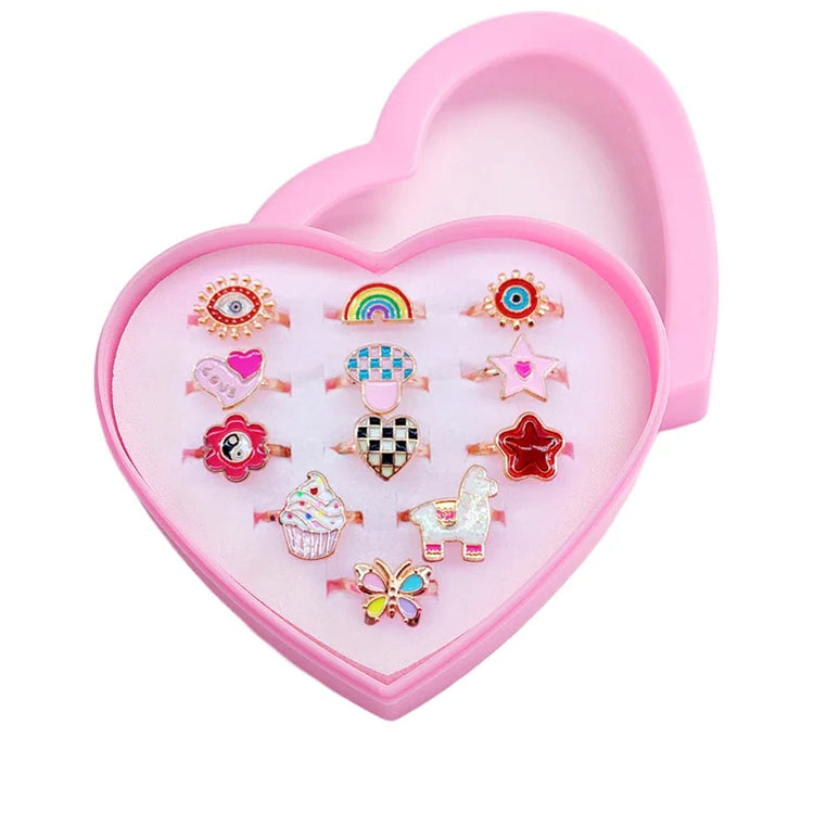 12PCS Cartoon Crystal Animal Adjustable Kids Rings – Fun Open Finger Jewellery Set for Girls’ Birthday Party Gift in Gift Box