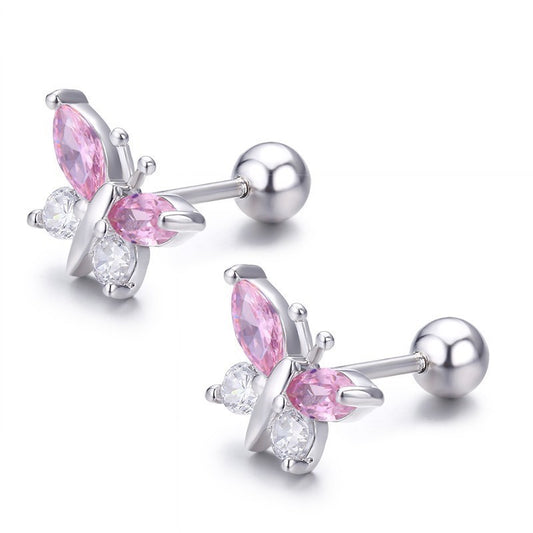 Fluttering Elegance: 925 Sterling Silver Pink CZ Butterfly Stud Earrings - Charming Screw Backs for Girls!