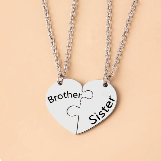 Trendy 2-Pcs Brother & Sister Spliced Heart Puzzle Necklace Set β Unisex Stainless Steel Family Jewellery Gift!