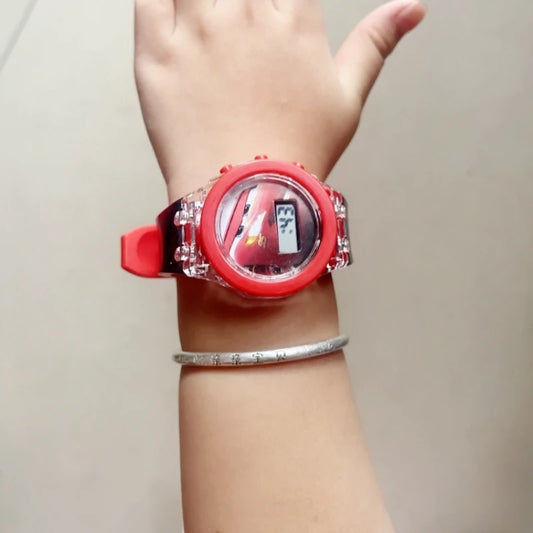 Lightning McQueen Luminous Electronic Kids Quartz Watch – LED Light Cartoon Wristwatch | Boys Sports Watch Gift!