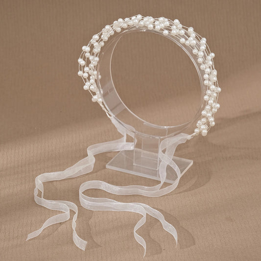 👑 Elegant Pearl & Ribbon Hairband – Imitation Pearl Braid Accessory for Baptism, Confirmation, Flower Girls | Premium Braided Headband for Girls 💒