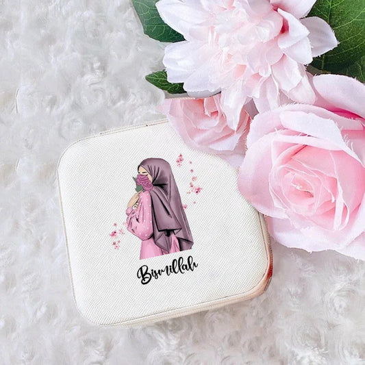 Personalized Hijabi Girl Jewelry Box: Custom Name Travel Storage Case!