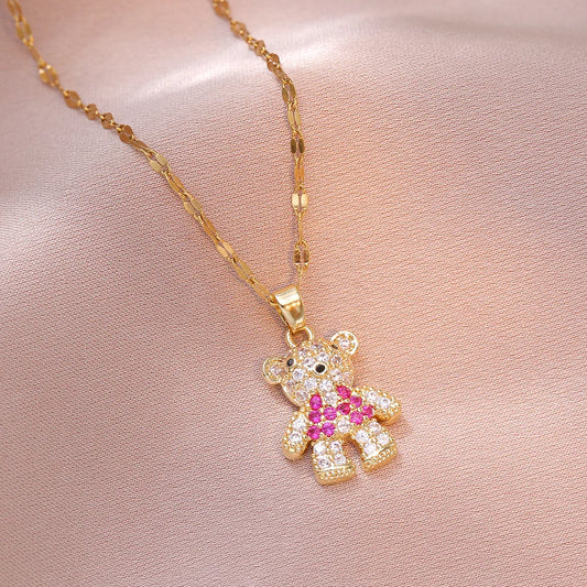 Cute Zircon Bear Pendant Necklace for Girls 💖 | Stainless Steel Jewelry Gift.