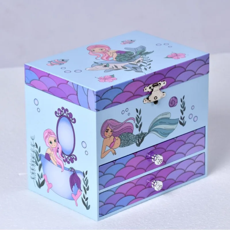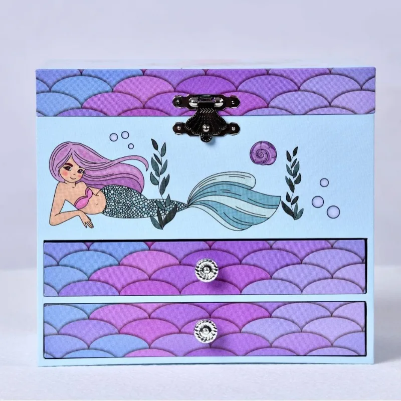 Purple Ocean Mermaid Wooden Musical Jewellery Box with 2 Drawers | Kids Jewellery Storage Birthday Gift for Girls!