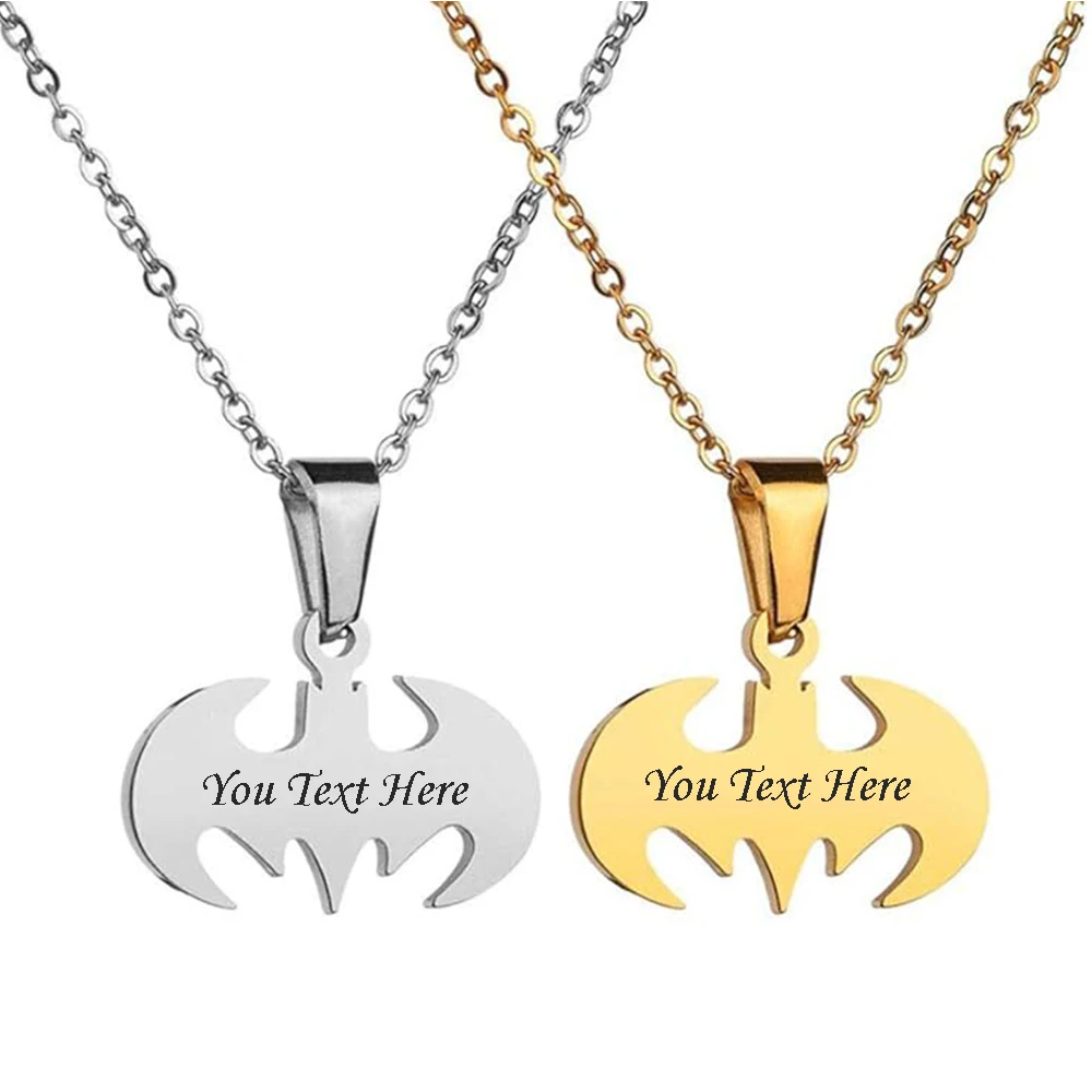 Smooth Customisable Stainless Steel Bat Pendant Necklace for Boys, Teens & Men – Super Hero Fans Jewellery Gift!