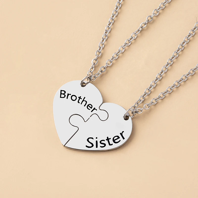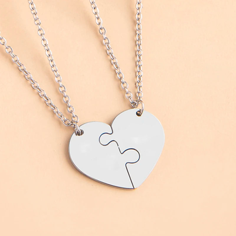 Trendy 2-Pcs Brother & Sister Spliced Heart Puzzle Necklace Set – Unisex Stainless Steel Family Jewellery Gift!