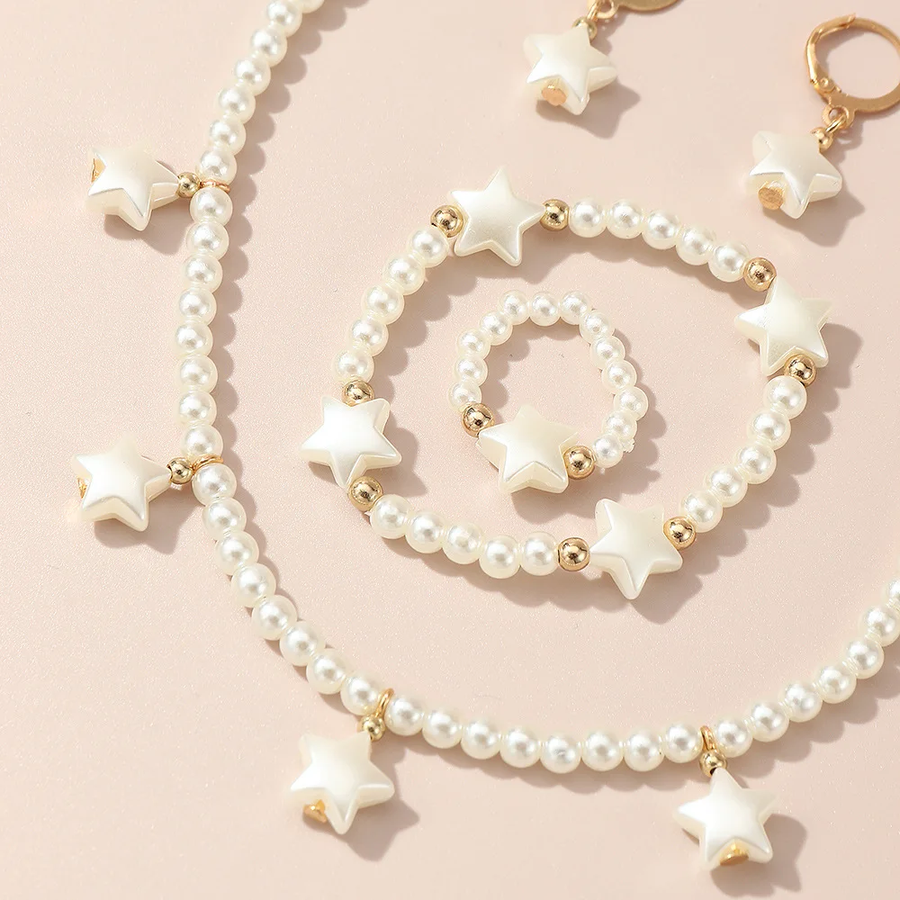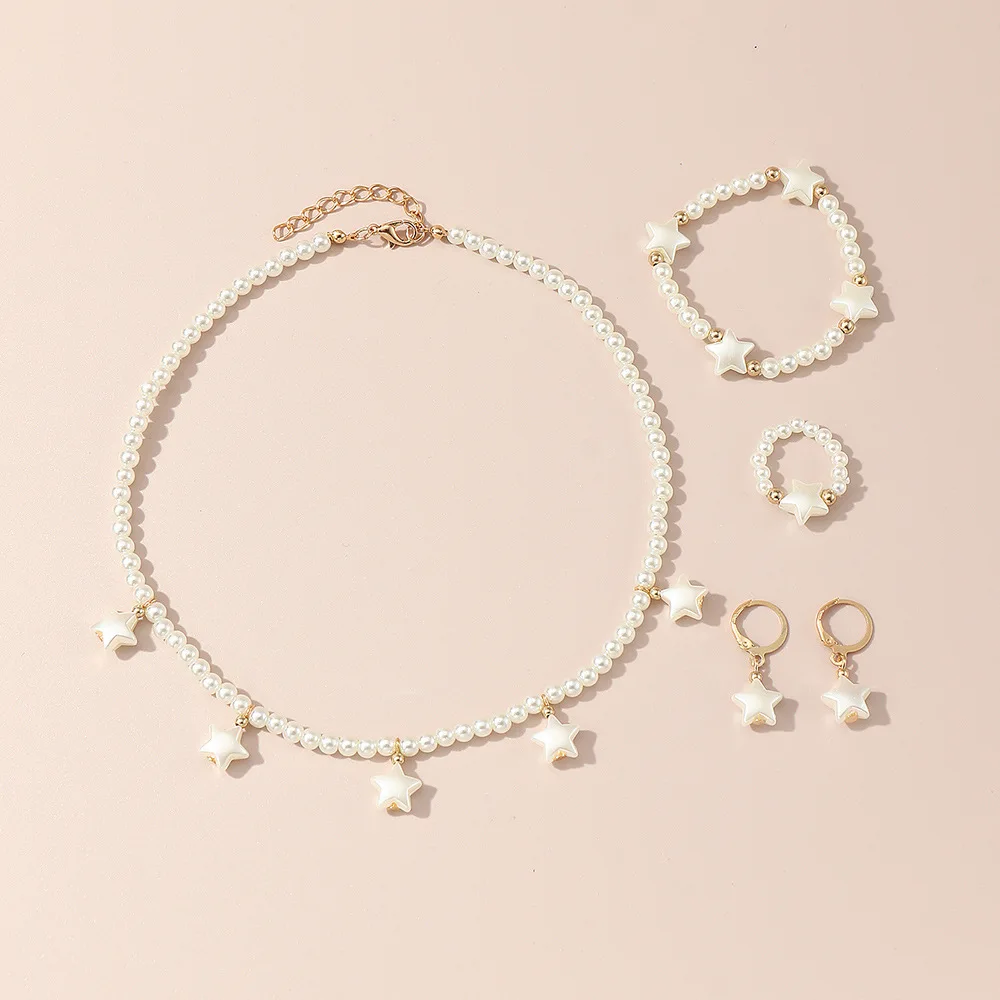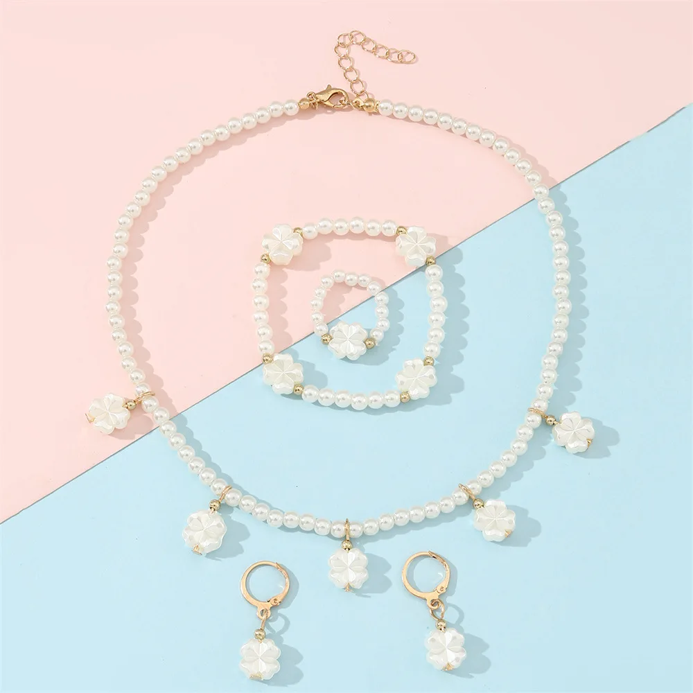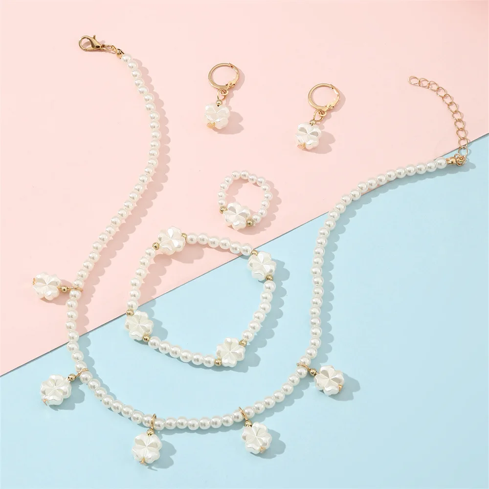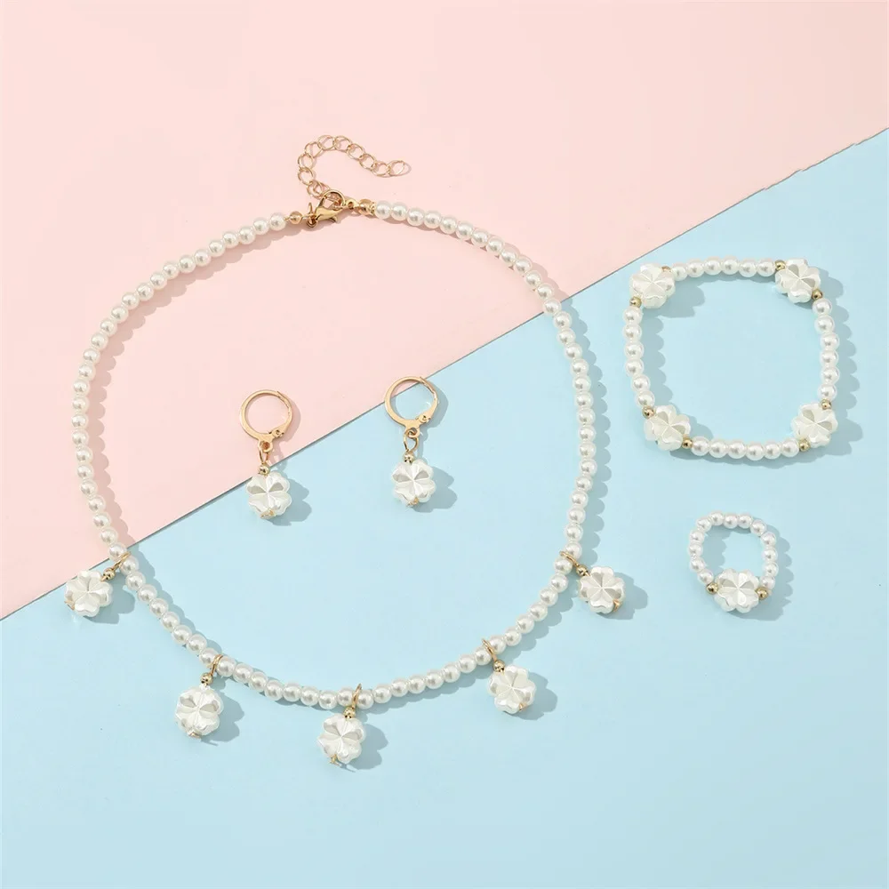 Children’s Luxury Pearl Jewellery Set – French Style Earrings, Bracelet, Necklace & Ring | Elegant Kids Jewellery Gift!