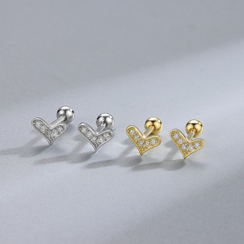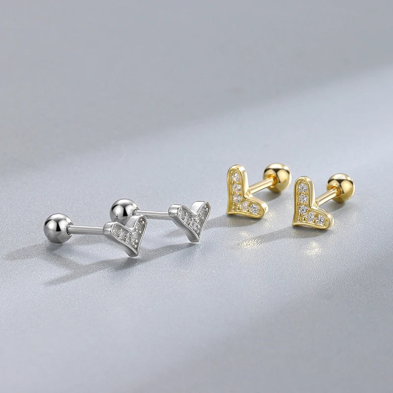 Vintage 925 Sterling Silver/ Gold Plated Small Heart CZ Screw-Back Earrings for Girls – Fine Jewellery!